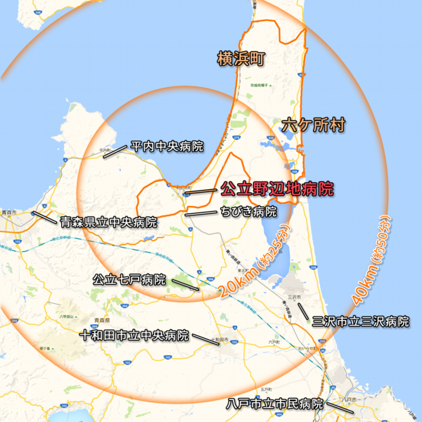 最近、新聞紙上に掲載されました平内中央病院や公立七戸病院との再編合併の件についてお伝えします。本当であれば、当院独自で昭和47年に建設された本館棟と昭和56年に建設された南棟の耐震問題とこれらの病棟の使用が時代の医療情勢に全く適していないなどのことから、最新の病院建設を目指すべきと10年ほど前は考えていました。しかし、この数年をみても、周辺人口の減少とそれにつれて患者さんの減少が顕著になってきていて、これに併せて病院を新築するにしても、非常に規模の小さい病院しか目指せないことがはっきりしてきました。これでは、非常に効率も悪く、また、国の地域医療構想からかなりずれていることがわかります。そこで、少し不便になりますが、今のこの地域の病院はすべて診療所に変更して、救急対応のできる新病院の設置場所を交通の要所に変更して、医療圏を拡大して3~4万人を対象にした病院を目指すべきと考えました。現状の病院は1万5千人程度を対象にしており、病院として採算性のとれた病院として生き残ることが非常に難しいと思います。しかも、夜間、休日の1次、2次救急のことを考えると、医師も十和田市立中央病院並の最低30人ほど必要です。西日本の病院では同じような規模の病院でも30人くらいの医師で病院が運営されていますが、青森県では本当に少ない医師数で日常業務をこなしています。さらに開業されている医師達も減り、高齢化しています。当院の医師達も徐々に高齢化が進んでいます。大学からは研修医や若手のキャリア形成つまり専門医取得に何ら寄与しない地方の小病院勤務はかなり難しいのが現状です。県病も10年以内には青森市東部から市内中心部への移動も視野に入れていると聞いており、平内、野辺地あたりからのアクセスが少し不便になり、また、当然救急車の搬入も当然遅くなります。十和田市立中央病院がこの上十三地区の中核病院ですが、野辺地からは45分ほどかかります。それであれば、今は県病の救命センターを目指した方が医者にも患者にベターな選択となり、現状では県病へ連絡し、搬送受け入れをお願いしているのが現状です。しかし、将来、野辺地病院も診療所化し、地域に病院が無くなった場合には、上十三地域の中核病院である十和田市立中央病院にまず搬送することになり、必要時には三次救急病院である八戸市立市民病院に搬送されることが想定されます。しかし、野辺地町民にとって青森市での医療指向がつよく、自分たちの地域に病院があることで、現在のように、地域住民の急性期を救急対応してもらいながら、さらに高次医療を要する場合には県病に搬送する方法を目指すのが理想でしょう。ですから、町には病院経営の補助をしてもらいながら、今の場所でなくても、この地域に急性期を扱う病院の存続を選択した方がよいと考えます。