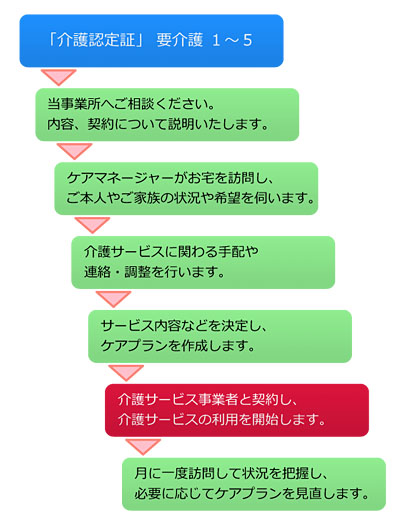 指定居宅介護支援事業所とは、県から指定を受けたケアマネージャー(介護支援相談員)が居る事業所です。利用者さんが可能な限り自宅で自立した日常生活を送ることができるよう、ケアマネージャーがケアプランを作成し、そのプランのサービスが適切に提供されるよう、事業者及び関係機関との連絡・調整を行っています。